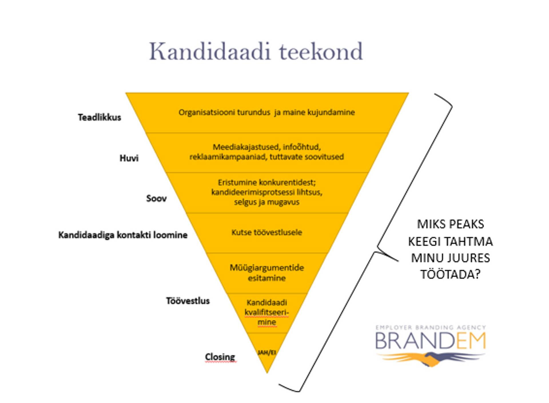 Allolevalt skeemilt näeme, millised etapid tuleb kandidaadil läbida eduka closing’uni jõudmiseks, kusjuures igas kandidaadi teekonna etapis peab tööandja vastama küsimusele, miks peaks keegi tahtma töötada sinu organisatsioonis.