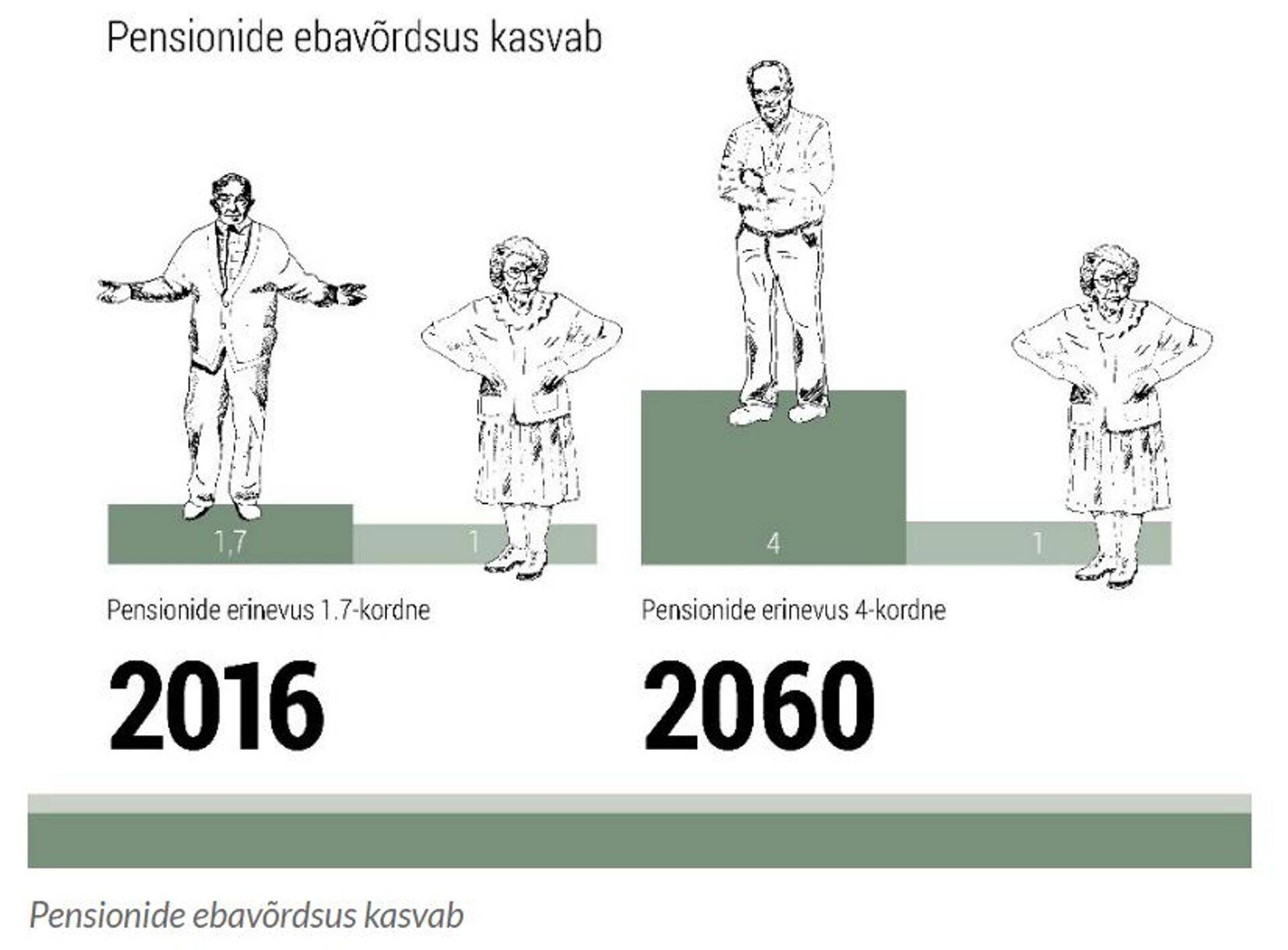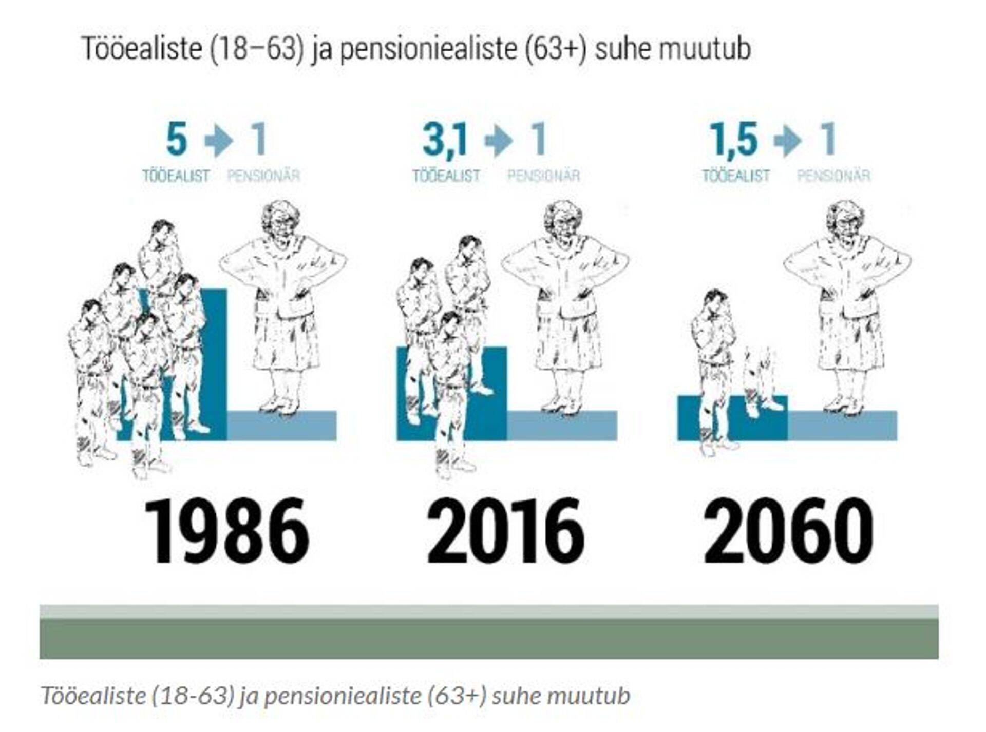 Eesti pensionid on aga juba praegu lõviosas sellise suurusega, et nende vähendamisest ei saa olla juttugi. Töötajate ja pensionäride suhte prognoos näitab, et kui viimasel 20 aastal on olnud keskmiselt üle kahe töötaja ühe vanaduspensionäri kohta, siis aastaks 2060 jõuab see alla 1,3, arvestades ka pensioniea tõusu kuni 2026. aastani. Tööealiste ja pensionäride suhe jõuab prognooside kohaselt 2060. aastaks 1,5 tööealise inimeseni ühe pensionäri kohta. Selline areng tooks omakorda kaasa pensionide vähenemise, sest pensioni maksjaid on vähem, pensionäre aga oluliselt rohkem.